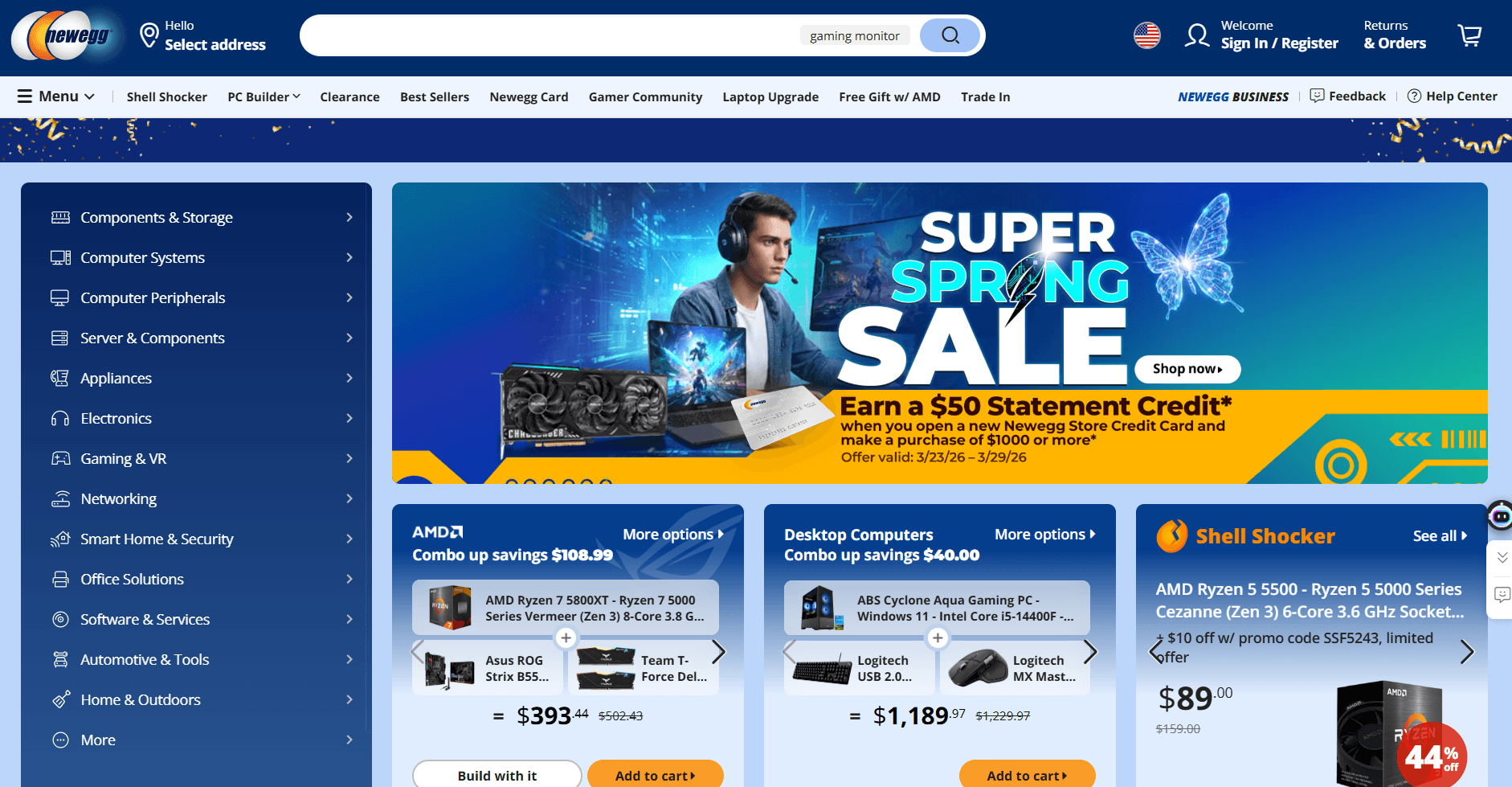 - Tech-focused categories: Newegg offers detailed filters for specs like GPU type, processor model, RAM speed, and storage capacity.