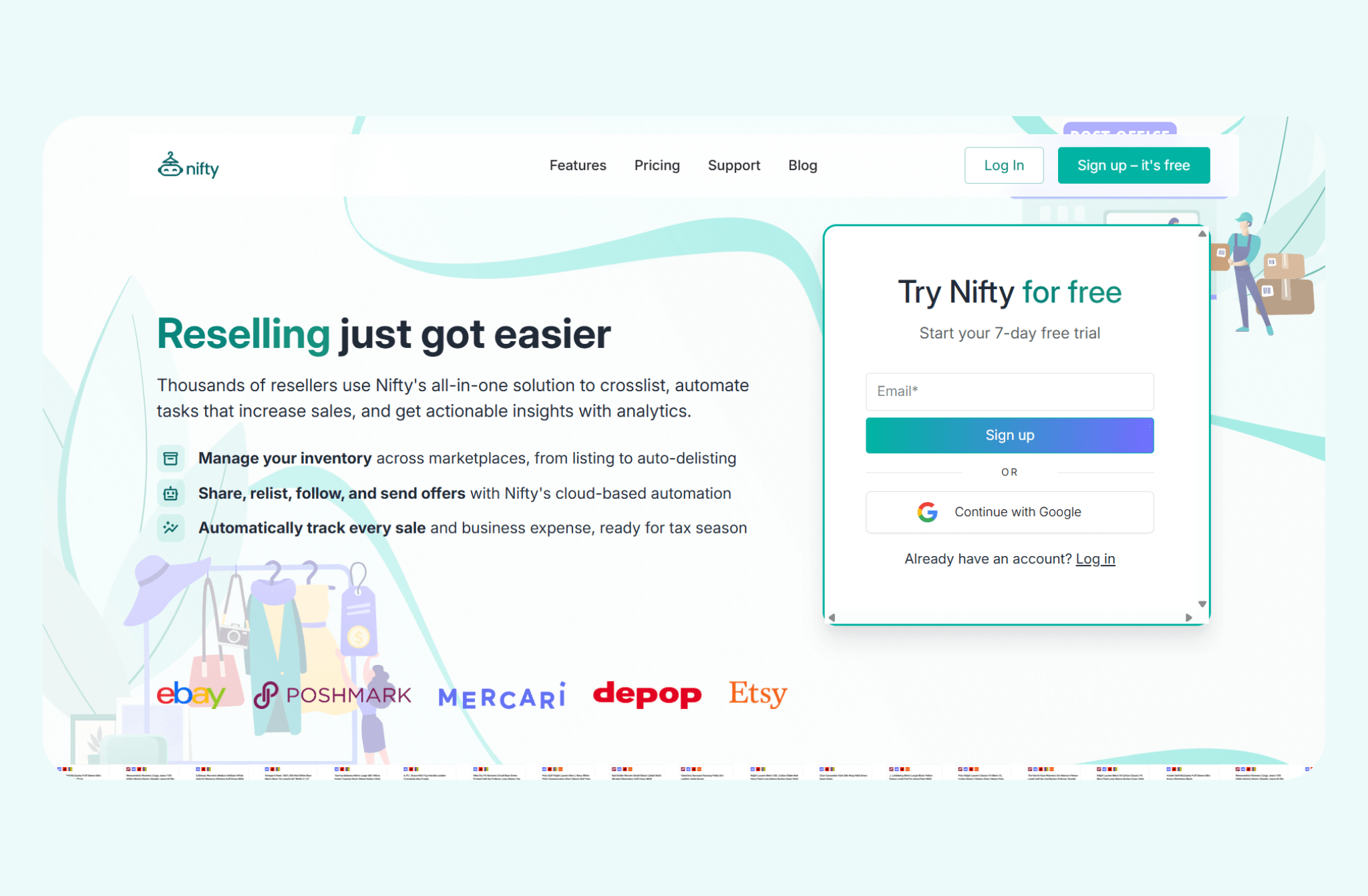 Nifty pays for itself in just a few weeks by reducing manual crosslisting work and preventing costly double-sales. Start with a 7-day free trial and see how Nifty can help you crosslist your Poshmark items.