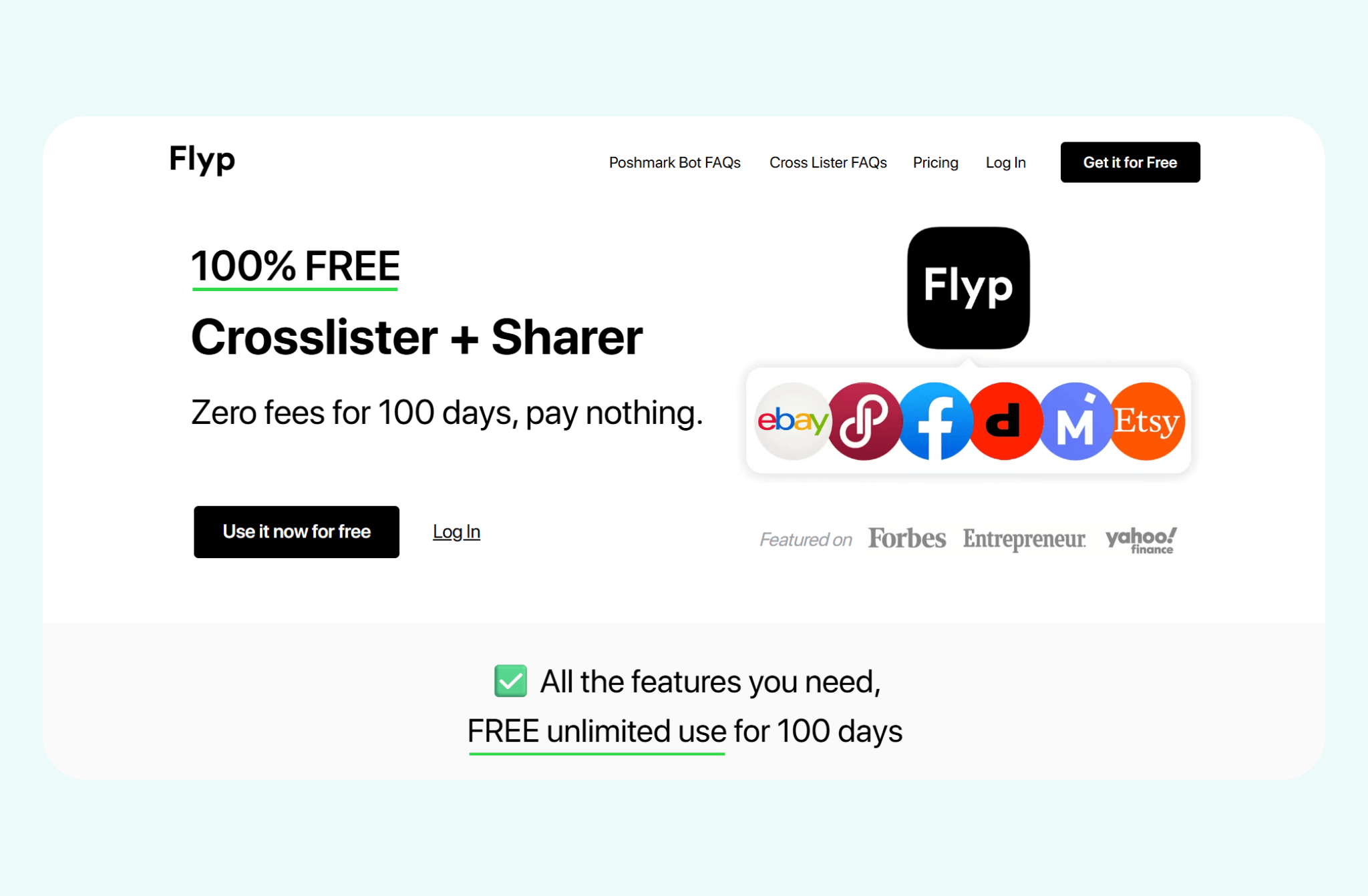 What it does: Flyp is a budget reselling tool that uses a Chrome extension for crosslisting, delisting, and sales tracking. It originally launched as an iOS app that connected new resellers with “Pro Sellers” who list and sell your items on consignment. Flyp still offers this service via mobile app.