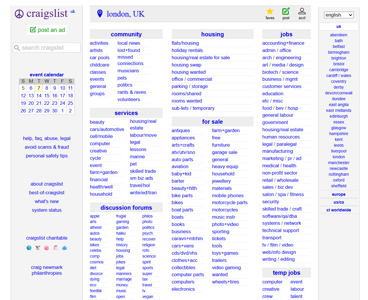 Craigslist is a local classifieds platform where you can sell and advertise goods, housing, jobs, and services. The platform organizes listings by city and region, keeping transactions strictly local. It's ideal if you're selling large items like furniture and vehicles, or you're providing a service.